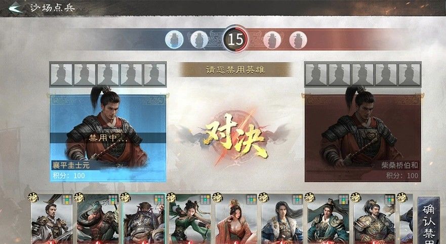 主公匹配到对手后,将率先进入英雄禁选与选人阶段。双方轮流进行操作,各自可选择5名英雄、禁用2名英雄。(每次禁用英雄和选择英雄均只有30秒的时间)