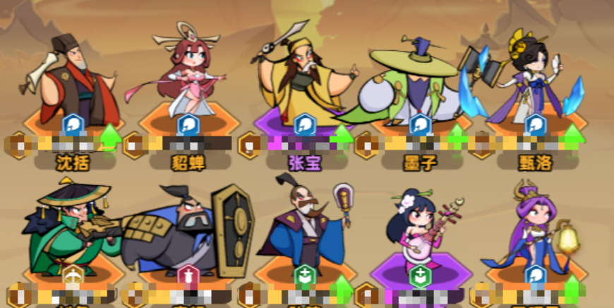 另外还有沈括这个角色在这里也是比较重要的,他的功能效果大家也一定要提前升级起来,然后上满5个谋士,触发其他效果之后,大家在其他的位置上面还可以给他们搭配一个王昭君,这样大家在经济获取当中能够拿到更多的银币,但是她在这里主要是作为一个经济增长的作用来进行搭配,所以不用过多的投入资源,星级提升在这里也没有太大的要求,除了5谋士之外,其实其他的空白卡位上面,大家还可以根据对手的上阵英雄来进行调整,比如说对手如果其他位置上面上的是谋士比较多,建议大家可以搭配的就是有法力抗性效果的英雄,这里比较推荐的是刘备,他自身的抗性数值还是比较高的。