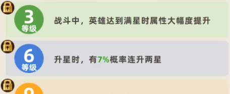 比如在升级到2级的情况下,这里它基础的属性就有攻击能力以及生命上面的提升,攻击当中有5%的提升,而生命上面有10%的加成效果,但是并不是每一次升级都会带来基础属性当中的提升,比如在第3级的时候带来的就是技能效果加强,此时在战斗当中,只要他达到满星,那么这里属性提升的数值是会达到一个非常强的地步,在达到6级的情况下,这里大家给他进行升星,就可以连续升两星,但是这个概率是只有7%的,然后达到9级的情况下,这里就要注意他命中了敌人之后,自己的技能冷却时间就会加速很多,其实这个技能的加快效果对他来说还是比较有用的,因为周瑜目前在自己攻速上面相对来说没有那么快,但是他在技能快速使用的情况下,2.5秒就可以带来10次连击,还是比较管用的,频率比较快的情况下,如果确定能够多次使用的时候,周瑜的输出就可以依靠这里快速使用的各种绝技来叠加起来。