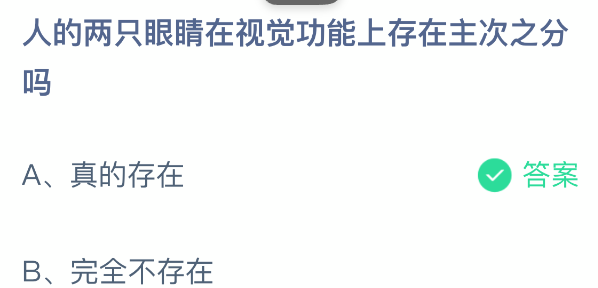 以上就是人的两只眼睛在视觉功能上存在主次之分吗?支付宝蚂蚁庄园2026年4月30日答案最新,更多相关攻略,请关注3dm手游网更新!