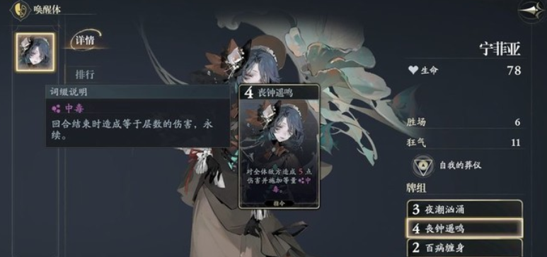 今天第一个给大家推荐的叫做毒奶消耗流,这个搭配当中大家一定要先选择宁菲亚这个角色,她在其中带来的核心功能是其中消耗主要用到的能力,而且整体的体系搭配成功以后,战术效果逻辑其实也是非常清晰的,只要能够快速的叠加更多中毒的效果,那么敌人受到的持续伤害越多的情况下,我方几个回合当中叠加起来的伤害,就可以快速让敌人耗尽自身的生命数值,而且这里我方带来的中毒伤害并不会随着时间自动消失,在其中只要给敌人挂上多层中毒,对面就会持续掉血,而且在这里宁菲亚自身独特的机制效果,也可以让其中已有的中毒层数得到翻倍的加成,所以这里她持续伤害效果也是可以缓慢加成起来,在关键回合里面带来的爆发输出,基本就靠宁菲亚的功能就可以保证其中的输出,另外再搭配其他成员当中,大家还可以放诺缔拉、朵尔以及珈伦。