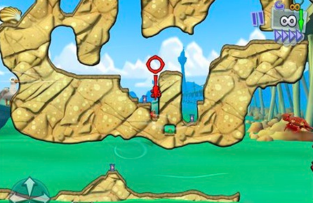 具体的方案是我方向如下图所示,接下来点击虚拟按键上的向前移动的方向,直到小虫移至绳索附近,再点击第二个工具键,让小虫稳固在绳索之上,第三步,点击上行键,此时小虫会沿着绳索方向向上攀爬。