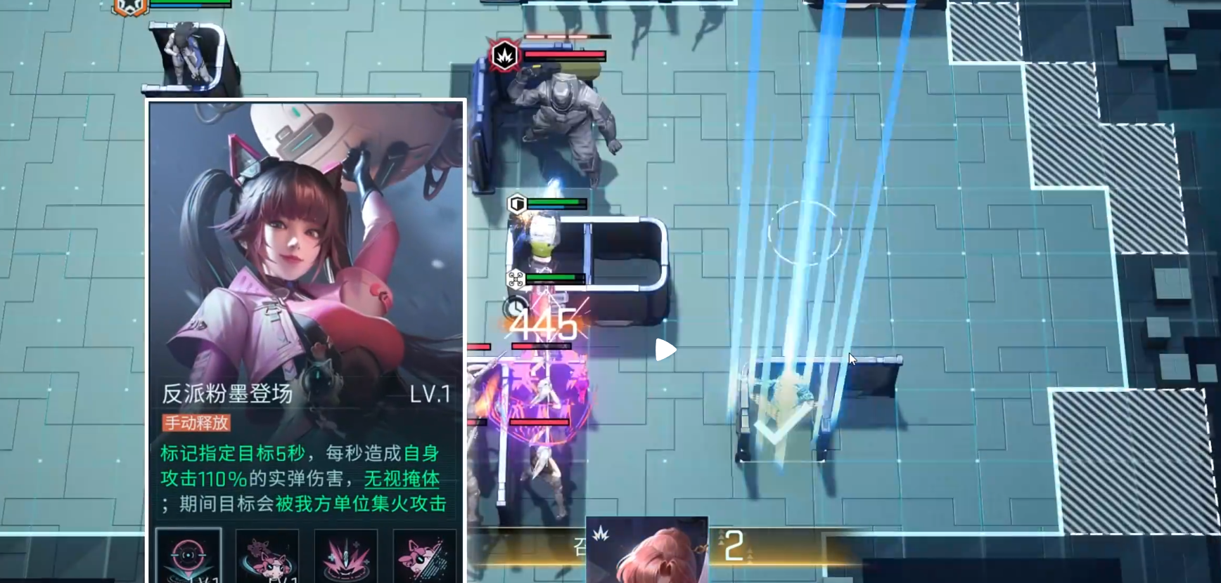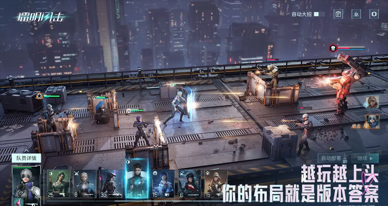 说完养成聊聊塔攻玩法,真是把传统塔防彻底颠覆。别的游戏守着基地等怪来,这儿直接转守为攻,带小队往前推,把敌人防线一个个撕烂。指挥官亲自上阵,实时费用攒够就下人,讲究时机和站位。掩体和侧击是灵魂。敌人躲掩体后?绕侧面或背后打,伤害直接飙升,还能破弱点。七个职业各司其职,重盾扛线、狙击点杀、火力清场,搭配好了比堆数值爽多了。战斗节奏快,场均一分半,十几次关键决策定胜负,不用像战棋那样一关磨半小时。