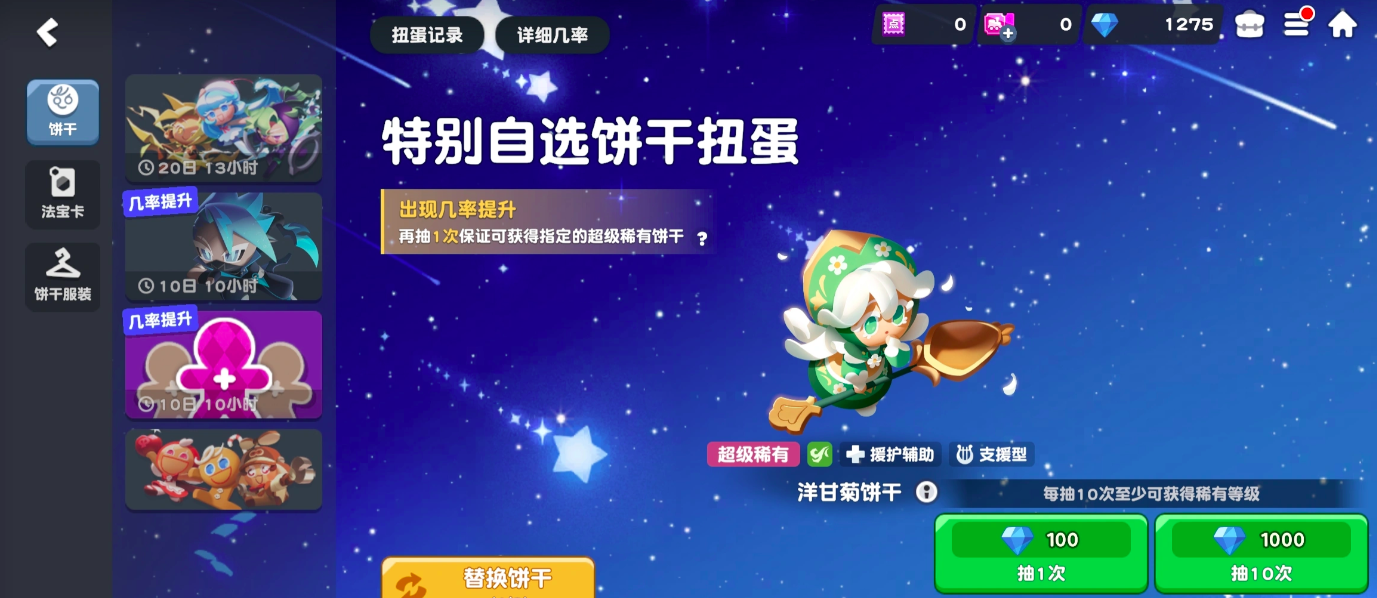 洋甘菊饼干作为超稀有的元素辅助物型角色,在整个团队当中可以发挥强有力的支援作用,要想成功获取这个角色,需要通过特别自选饼干扭蛋才能获得,先来看一下该角色的技能效果。被动技能“迎接贵客”,玩家通过强化洋甘菊饼干周围的洋甘菊茶壶可实现增加伤害量及恢复能量的效果,大大提升了全队的作战时长。