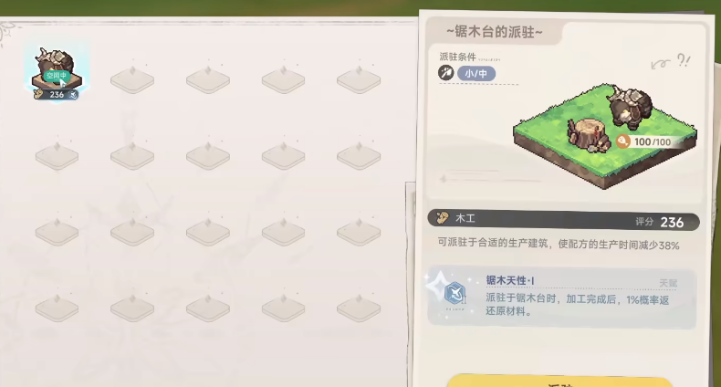 游戏里每个宠物都会有相应的特性,玩家可以根据特性把他们放到指定的工作位置,辅助玩家完成农作物的种植和特定资源的收割,不需要玩家再去消耗大量时间采集资源,宠物派驻之后,玩家可以节约更多时间,进入到不同的场景探索,每个宠物都会有对应的能力,可以根据宠物特性驻派到相应位置,发挥特定宠物的作用,木材和石材作为游戏里比较重要的资源道具,玩家可以多去派遣宠物完成特定的资源收集,辅助提升家园等级的同时,会帮助玩家节约大量游戏时间。