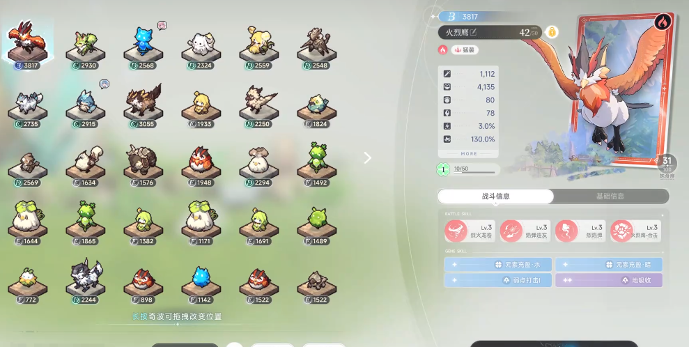 在家园工作的宠物需要及时观察饱腹值,通过投喂食物提升数值,保证角色可以持续工作,在和宠物探索的过程中,每一次骑乘或者飞行,也会消耗角色相应的数值,玩家要及时关注角色数值,所以是给宠物补充能量,确保在探索场景的过程中,有更多能量支撑,体力值越高,在探索或者是工作的过程中,产生的效率也越优秀。