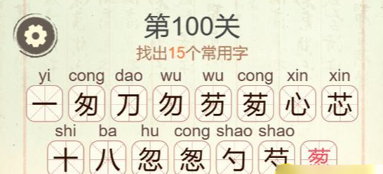 第100关葱找出15个常用字
